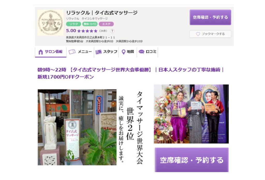雰囲気も良く、スタッフさんも親切です。毎月、リピートで通わせていただいてます。タイ式マッサージで全身をほぐしていただくので、血流も良くなって体もポカポカしてきます。-google Revew-